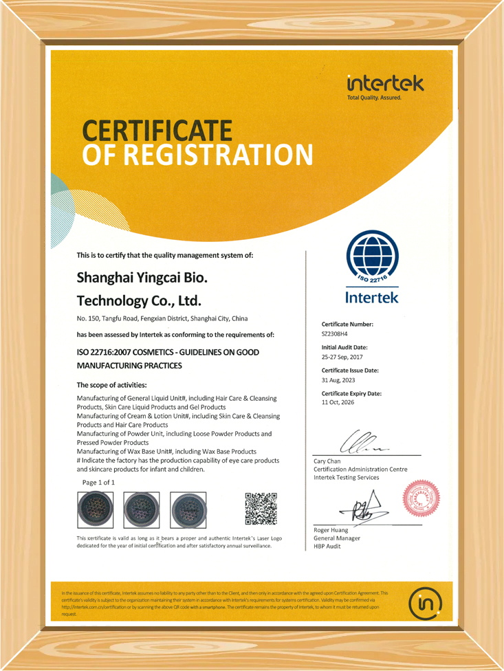 我们位于上海奉贤东方美谷,是一家专注于化妆品全产业链的高新技术企业,提供从原料研发、配方设计、功效测试、法规注册到生产贸易的一站式服务。 公司严格遵循ISO 22716、GMP等国际标准,并符合中国(CFDA)、欧洲(CPNP)、美国(FDA)、沙特(SFDA)等全球法规要求,确保产品创新、品质与合规。